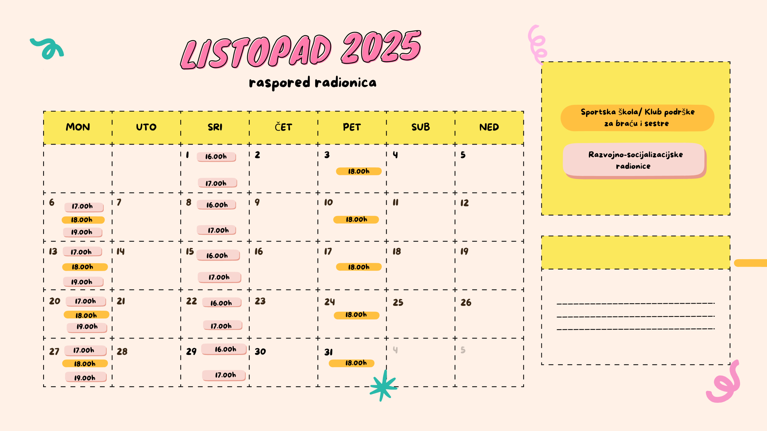 Termini aktivnosti za listopad nalaze se na priloženom rasporedu.